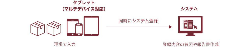 - ●現場で入力すると同時にシステムに登録でき、PCへのデータ入力や